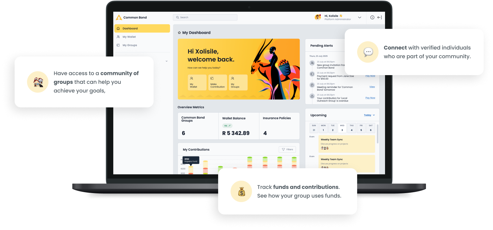 The common bond platform channels the strength of trust-based social networks - family, friends, congregants, cooperatives into structured financial value, transforming traditional mutual aid practices into a formal digital ecosystem.